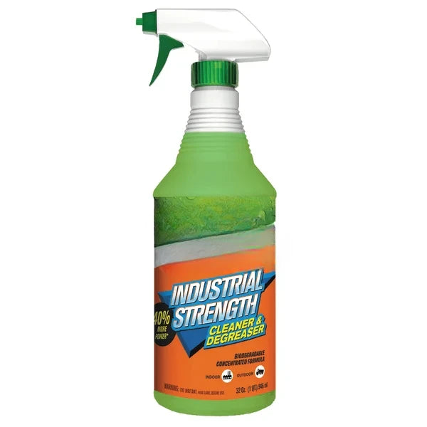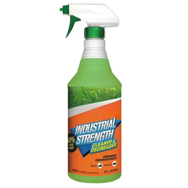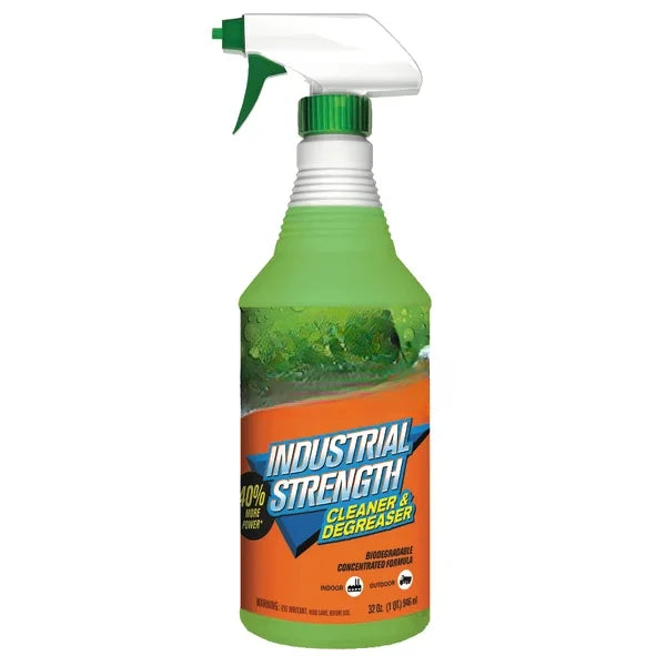 Mean Green Industrial Strength Cleaner and Degreaser Spray-386506, 32 oz: Tackles tough greasy messes and eliminates grime and dirt from most surfaces. It's a heavy-duty detergent that's non-toxic and biodegradable. This Mean Green all-purpose cleaner is concentrated and powerful. It can be used to tackle oily messes on clothing to carpet and engines to equipment. This Non-toxic degreaser can be utilized for applications both indoors and outside. Use it to clean off ceilings, walls and floors. The industrial strength formula provides a dependable toughness that erases filth and leaves behind a fresh clean scent.