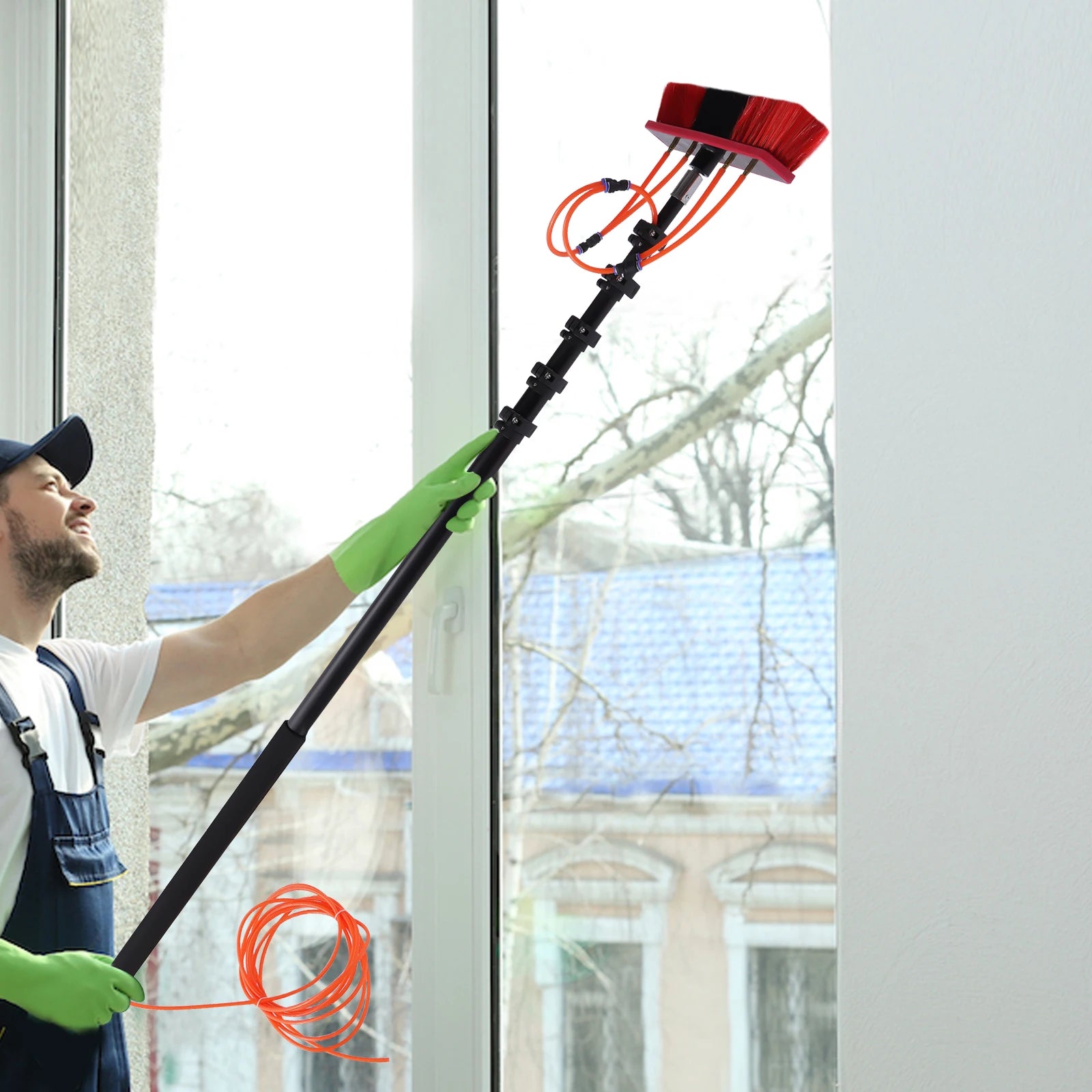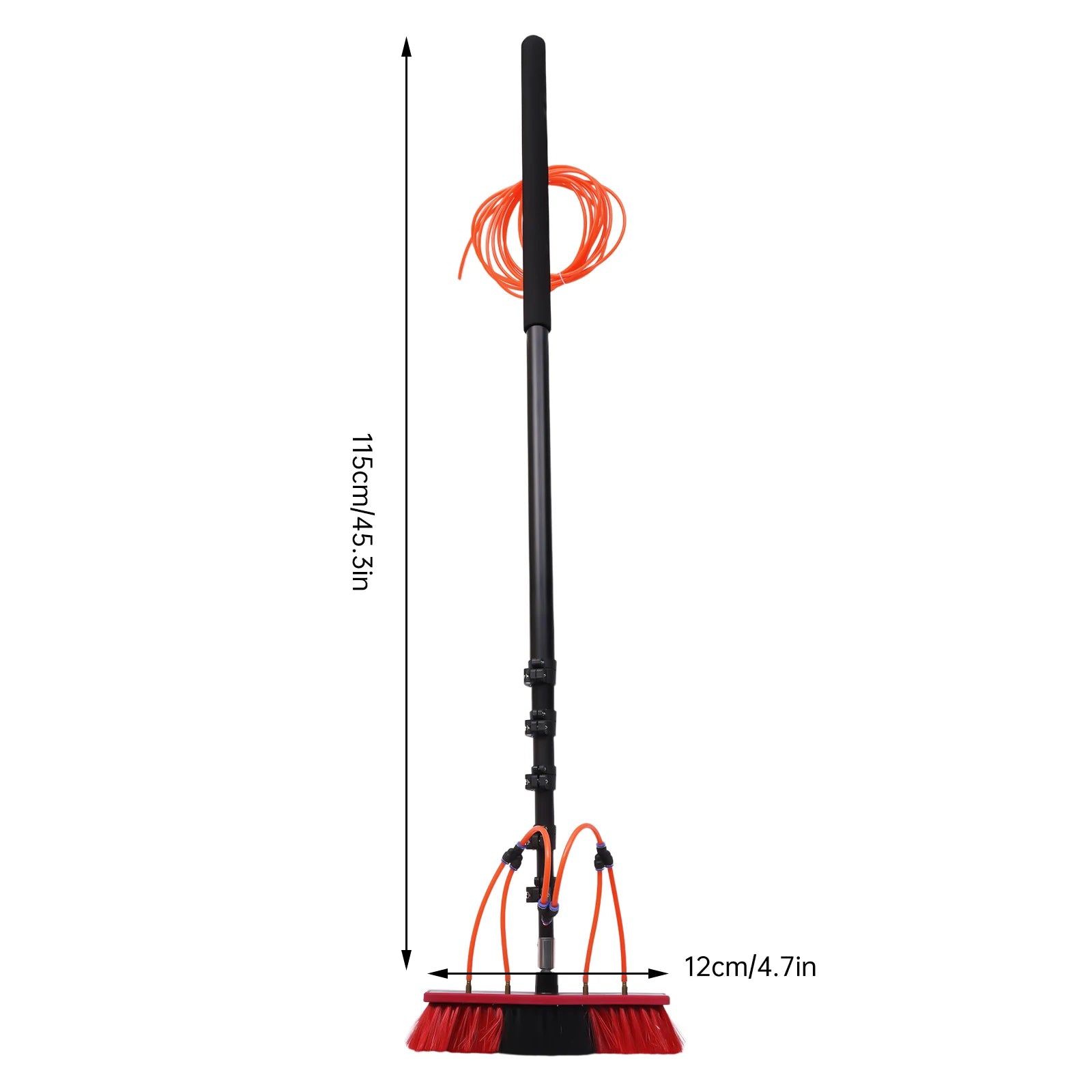 This water fed brush is equipped with a telescopic pole and a 23ft long water hose, offering great convenience in cleaning space. The PP bristles provide good cleaning power without scratching the cleaning surface, making it ideal for cleaning photovoltaic panels, cars and windows. The hose can also be installed in the telescopic pole, making it more aesthetically pleasing and convenient.
